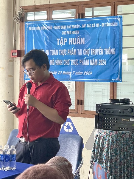 Ngày 12/7/2024, tại Hội trường Hợp tác xã Thương mại dịch vụ Tân Kiểng, địa chỉ số 123A Phan Đình Phùng, Phường 17, quận Phú Nhuận, Ủy Ban nhân dân quận phối hợp Sở An toàn thực phẩm thành phố Hồ Chí Minh, triển khai tập huấn phổ biến quy định của pháp luật về an toàn thực phẩm và các văn bản pháp lý liên quan đến việc triển khai xây dựng Mô hình chợ thí điểm bảo đảm an toàn thực phẩm cho Ban Quản lý các chợ và các thương nhân kinh doanh tại các chợ truyền thống với sự tham gia của đại diện 110 cơ sở kinh doanh thực phẩm và dịch vụ ăn uống. Tại buổi tập huấn, Báo cáo viên là các chuyên viên của Sở An toàn thực phẩm Thành phố trao đổi về công tác quản lý an toàn thực phẩm tại các chợ truyền thống trong giai đoạn hiện nay, Tiêu chuẩn quốc gia TCVN 11856:2017 có quy định về yêu cầu chung đối với các cơ sở kinh doanh tại chợ, Nghị định số 124/2021/NĐ-CP ngày 28 tháng 12 năm 2021 của Chính phủ về sửa đổi, bổ sung một số điều của Nghị định số 115/2018/NĐ-CP ngày 04/09/2018 của Chính phủ về Quy định xử phạt vi phạm hành chính về an toàn thực phẩm và các vấn đề liên quan. Đồng thời, nhấn mạnh vai trò, trách nhiệm của người kinh doanh thực phẩm, kinh doanh dịch vụ ăn uống trong công tác bảo đảm an toàn thực phẩm trong tình hình hiện nay. Sau phần trình bày của các báo cáo viên là phần giải đáp các ý kiến thắc mắc, cũng như chia sẻ những phương thức hay trong công tác an toàn thực phẩm giữa báo cáo viên và tiểu thương. Buổi tập huấn được tổ chức đã giúp các thương nhân kinh doanh thực phẩm, dịch vụ ăn uống tại các chợ nâng cao ý thức trong việc thực hiện đúng các quy định pháp luật về an toàn thực phẩm bảo vệ sức khỏe của người tiêu dùng.