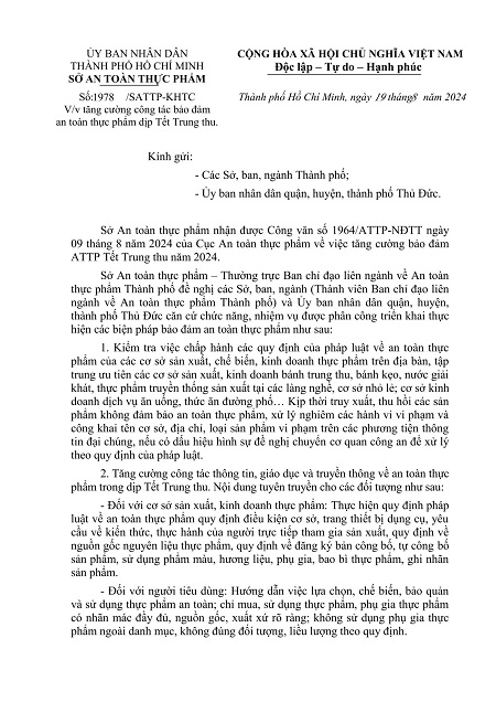 Tăng cường công tác bảo đảm an toàn thực phẩm dịp Tết Trung thu