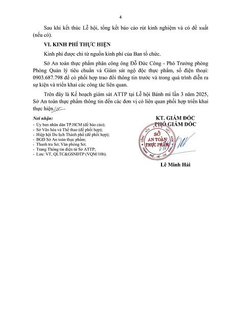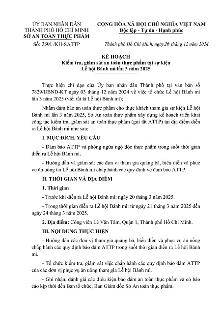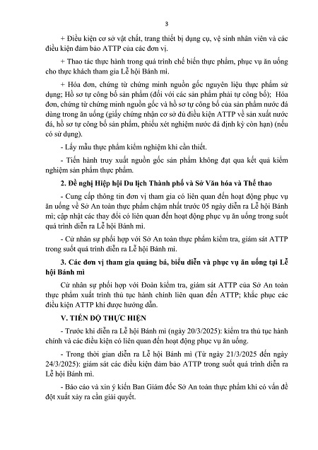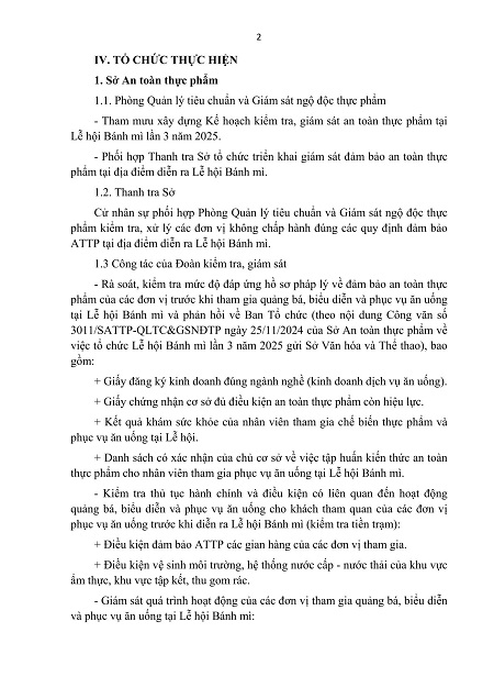 Kế hoạch Kiểm tra, giám sát an toàn thực phẩm tại sự kiện Lễ hội Bánh mì lần 3 năm 2025