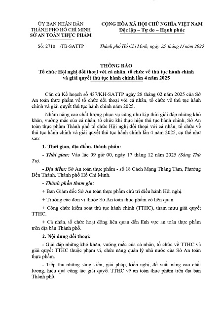 THÔNG BÁO Tổ chức Hội nghị đối thoại với cá nhân, tổ chức về thủ tục hành chính và giải quyết thủ tục hành chính lần 4 năm 2025