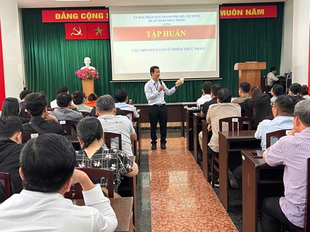 Tiếp theo chương trình, chuyên đề 2 tập trung vào các nội dung chuyên môn liên quan đến phòng ngừa nguy cơ mất an toàn thực phẩm trong hoạt động kinh doanh dịch vụ ăn uống. Nội dung tập huấn tập trung làm rõ các khái niệm, định nghĩa về các mối nguy ô nhiễm thực phẩm, bao gồm mối nguy sinh học, hóa học và vật lý; phân tích các nguồn gây ô nhiễm thường gặp trong quá trình chế biến, bảo quản và kinh doanh thực phẩm. Song song đó, các báo cáo viên cũng khái quát về tình hình ngộ độc thực phẩm trên địa bàn Thành phố trong thời gian qua, phân tích nguyên nhân thường gặp và những bài học kinh nghiệm rút ra từ các vụ việc thực tế. Thông qua buổi tập huấn, các cơ sở kinh doanh dịch vụ ăn uống được cung cấp nền tảng kiến thức về nhận diện, kiểm soát và phòng ngừa các mối nguy, đồng thời, được hướng dẫn phương hướng xử lý khi xảy ra sự cố ngộ độc thực phẩm, bao gồm việc phát hiện sớm, báo cáo kịp thời, phối hợp với cơ quan chức năng và triển khai các biện pháp khắc phục theo đúng quy định, nhằm hạn chế tối đa hậu quả, góp phần bảo đảm an toàn thực phẩm trong hoạt động kinh doanh hằng ngày.