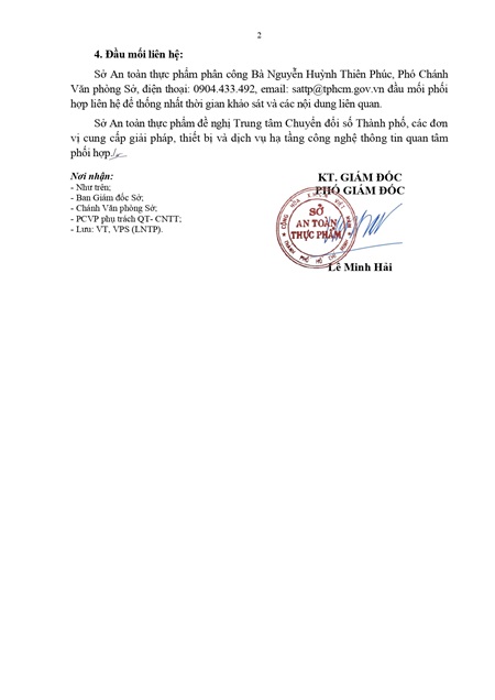 Công văn mời khảo sát triển khai thực hiện dự án đầu tư “Nâng cấp hạ tầng công nghệ thông tin giai đoạn 1 tại Sở An toàn thực phẩm”