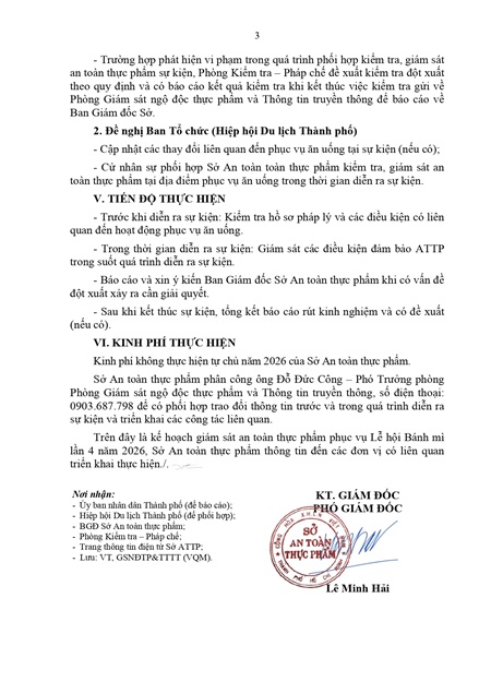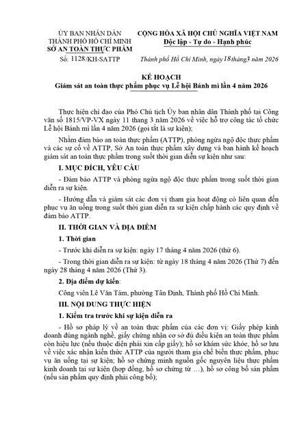 Kế hoạch Giám sát an toàn thực phẩm phục vụ Lễ hội Bánh mì lần 4 năm 2026