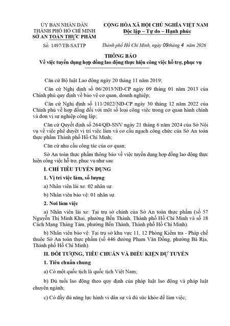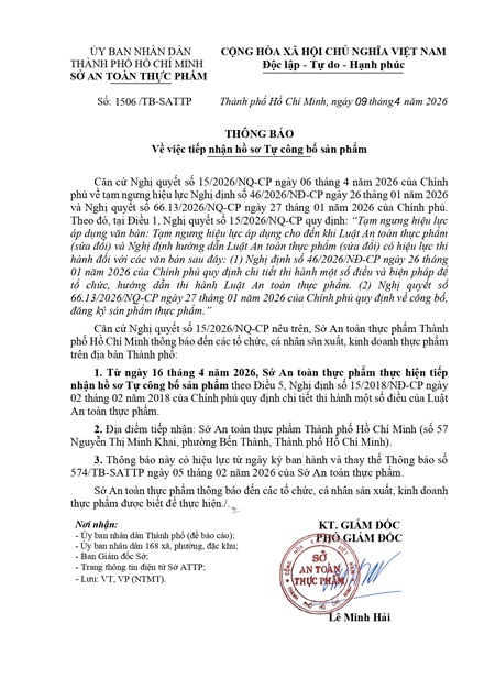 Trang web của Sở An toàn thực phẩm thành phố Hồ Chí Minh có thể được truy cập bằng 2 địa chỉ
