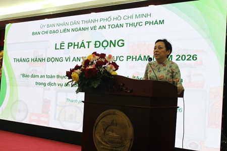 Phát biểu khai mạc, Bà Phạm Khánh Phong Lan - Phó Trưởng ban thường trực Ban Chỉ đạo liên ngành an toàn thực phẩm, Giám đốc Sở An toàn thực phẩm cho biết “thực phẩm an toàn là nhu cầu thiết yếu và là điều kiện tiên quyết để phát triển kinh tế, nâng cao chất lượng cuộc sống. Với một đô thị hơn 14 triệu dân như Thành phố Hồ Chí Minh, bên cạnh những kết quả tích cực, chúng ta vẫn đang đối mặt với nhiều thách thức từ các vụ ngộ độc thực phẩm tại bếp ăn tập thể và thức ăn đường phố khó truy xuất nguồn gốc. Chính vì vậy, Tháng hành động năm 2026 tập trung vào chủ đề: “Bảo đảm an toàn thực phẩm, phòng ngừa ngộ độc thực phẩm trong dịch vụ ăn uống và thức ăn đường phố”. Để triển khai hiệu quả, Sở An toàn thực phẩm sẽ quyết liệt thực hiện các nhiệm vụ trọng tâm: đẩy mạnh tuyên truyền thay đổi nhận thức; tăng cường kiểm tra giám sát các bếp ăn tập thể và cơ sở dịch vụ ăn uống; kiên quyết xử lý và công khai vi phạm; chủ động giám sát nguy cơ gây ngộ độc và phối hợp chặt chẽ với các lực lượng chức năng để quản lý chuỗi cung ứng; đề nghị các doanh nghiệp, hộ kinh doanh hãy thực hiện trách nhiệm bằng lương tâm và văn hóa kinh doanh; đồng thời mong muốn người tiêu dùng hãy thông thái hơn trong lựa chọn và tích cực phản ánh các sai phạm để cùng nhau tạo nên tấm lá chắn vững chắc bảo vệ sức khỏe cộng đồng”