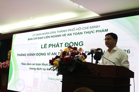 Cũng tại buổi Lễ, ông Nguyễn Mạnh Cường - Ủy viên dự khuyết Trung ương Đảng, Ủy viên Ban Thường vụ Thành ủy, Phó Chủ tịch UBND Thành phố Hồ ChíMinh thay mặt lãnh đạo Thành phố tiếp thu các ý kiến chỉ đạo sâu sát của đồng chí Bộ trưởng và tuyên bố phát động Tháng hành động vì an toàn thực phẩm năm 2026; Ông nhấn mạnh: Nghị quyết số 72-NQ/TW của Bộ Chính trị về một số giải pháp đột phá tăng cường bảo vệ chăm sóc sức khỏe và nâng cao sức khỏe nhân dân, xác định bảo đảm ATTP là một trong những giải pháp quan trọng, nền tảng với việc nâng cao thể trạng và sức khỏe, là nhiệm vụ cấp bách và lâu dài trong chăm sóc sức khỏe toàn dân. Ông nhìn nhận, Thành phố Hồ Chí Minh hiện có trên 14 triệu dân và 168 xã, phường, đặc khu. Công tác quản lý ATTP trên quy mô lớn dù có rất nhiều nỗ lực nhưng vẫn tiềm ẩn nguy cơ. Vì thế, Ông đề nghị các sở, ngành, địa phương thực hiện nhiều công việc cụ thể, quan trọng để đảm bảo ATTP, bảo vệ sức khoẻ nhân dân. Trong đó, tiếp tục nâng cao nhận thức, tuyên truyền đến người dân và người kinh doanh ý thức chấp hành, tuân thủ quy định ATTP; Tăng cường công tác giám sát, kiểm tra, phát hiện, xử lý, vi phạm, công khai những hành vi vi phạm ATTP; tăng cường công khai, minh bạch thông tin về các tổ chức, cá nhân vi phạm ATTP nhằm cảnh báo, răn đe phòng ngừa vi phạm; đề cao vai trò người đứng đầu trong công tác đảm bảo ATTP; Xây dựng và nhân rộng các mô hình chuỗi cung ứng thực phẩm an toàn, gắn với việc phát huy kết quả của khoa học công nghệ, đổi mới sáng tạo và chuyển đổi số; Đồng thời, tăng cường vai trò phối hợp của tất cả các cơ quan, địa phương, đơn vị từ cấp thành phố đến cấp cơ sở; trách nhiệm của UBND xã, phường, đặc khu trong công tác quản lý nhà nước về ATTP trên địa bàn.