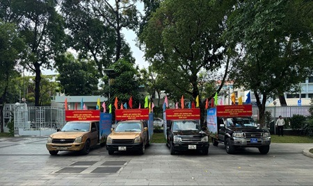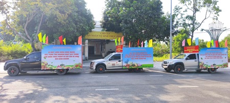 Hình ảnh xe loa hưởng ứng Tháng hành động chạy diễu hành